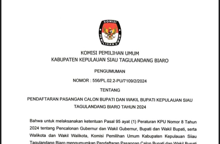 KPU Sitaro: Berikut Pengumuman Pendaftaran Bakal Pasangan Calon Pilkada 2024