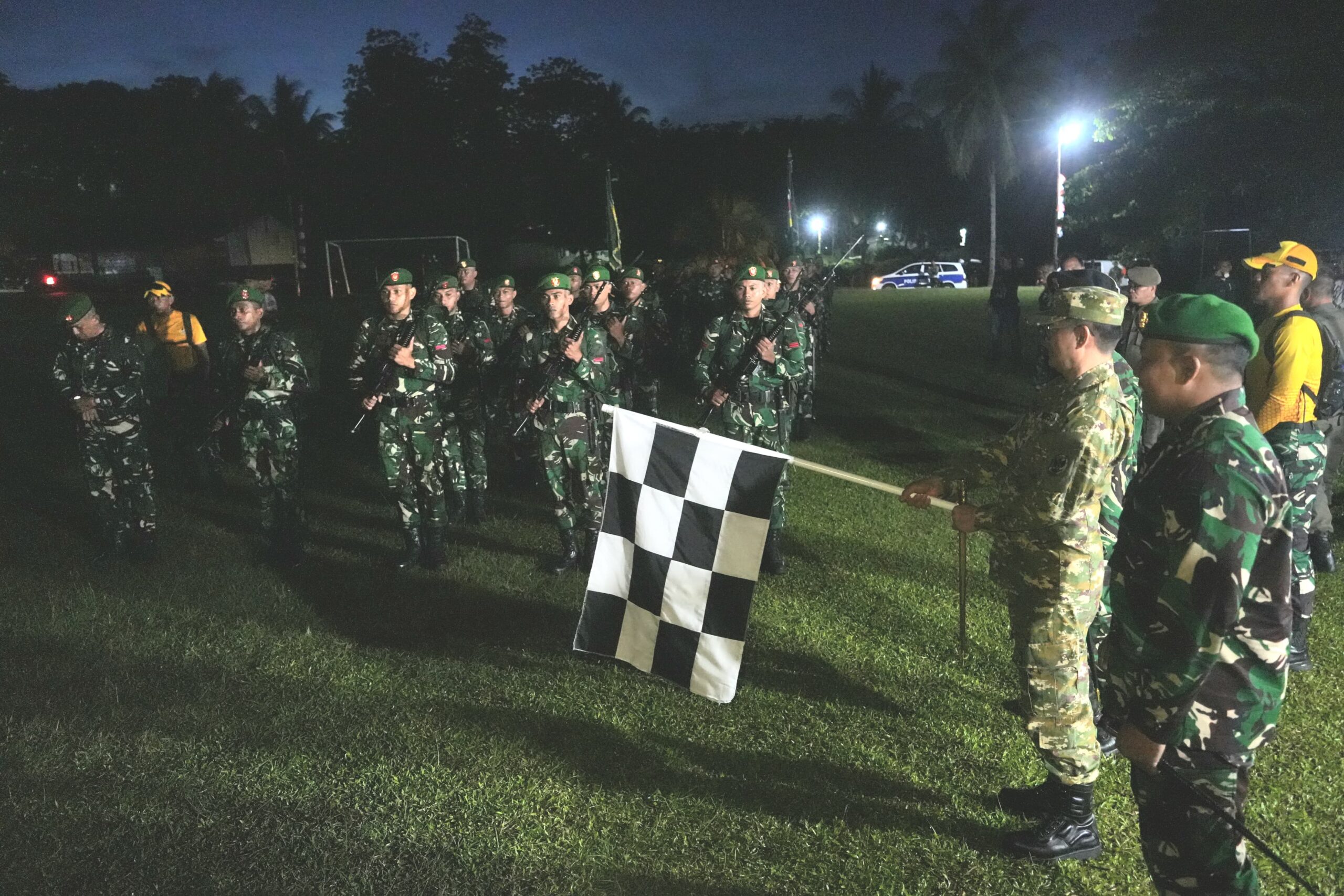 MINUT – Bupati Minahasa Utara Joune Ganda menunjukkan dukungan nyata terhadap semangat juang prajurit TNI dengan bertindak sebagai inspektur upacara serah terima Peleton Beranting etape tiga ke etape empat Tonting Yudha Wastu Pramuka (YWP), Kamis (18/12/2025) dini hari.